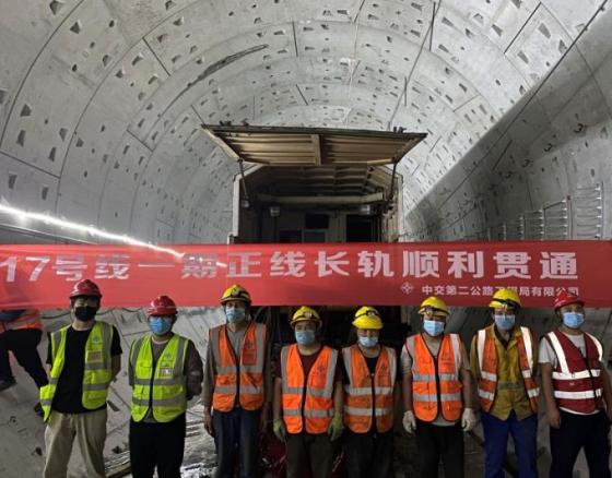 据17号线一期轨道专业工程师王弘波介绍,城市地铁施工中,铺轨施工是土建施工与机电施工的纽带,起着承上启下的关键性作用。“地铁工程轨道铺设的时候,都是用25米长的厂制定型钢轨铺下去的。铺完全线的钢轨,那就是我们常说的短轨通。在这之后呢,有一系列非常重要的工作,就是需要把这些所有的钢轨用专用的设备挨个焊接起来,通过若干个工序,最终把铺下去的短钢轨在施工现场变成无缝线路,做完所有这些工作,才是实现了这个长轨通。”