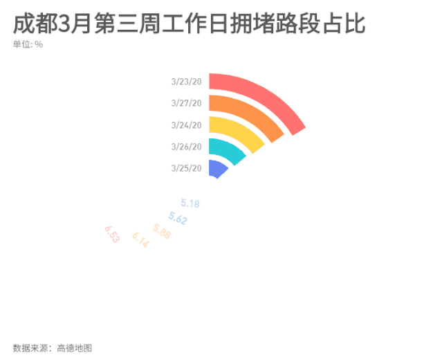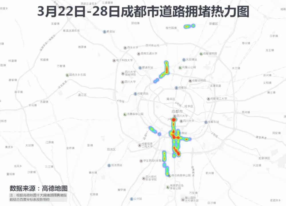 成都热线摘自腾讯网进入三月以来,每逢成都周一早晚高峰,打开导航,一道道红线覆盖在地图上,不少人感叹“熟悉的成都又回来了”。之前,四川将突发公共卫生事件应急响应由二级调整为三级,复工复产进一步加速加力。加之汽车尾号不限行,各条道路通行压力进一步加大,随处可见排队拥堵的车流。甚至不少网友又开始怀念起“限号”的日子。在过去一周,全市交通状况怎样?记者从高德地图收集梳理了上周七天成都交通的各项数据,从拥堵延时、拥堵地域、平均车速、十大拥堵路段等多个维度勾勒出过去一周成都交通的情况,制作一份成都避堵攻略给…